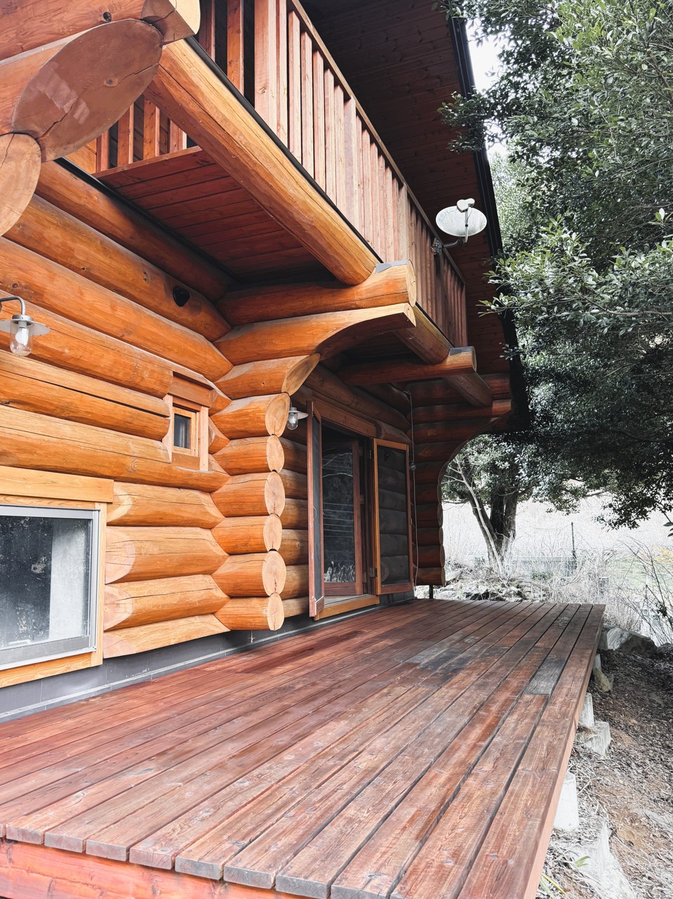 リビング前の大型ウッドデッキは洗浄・塗装しました。