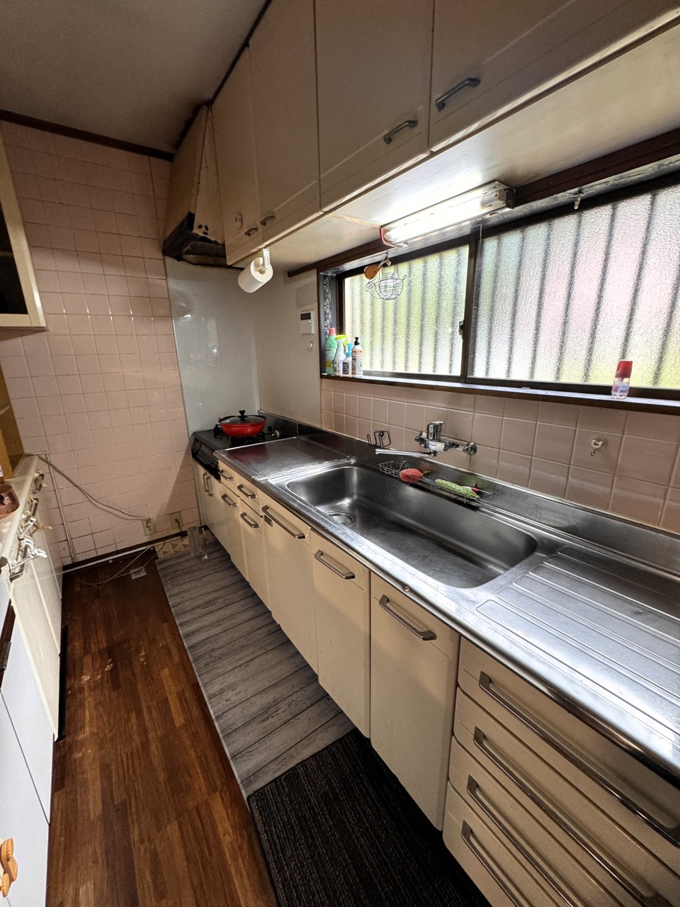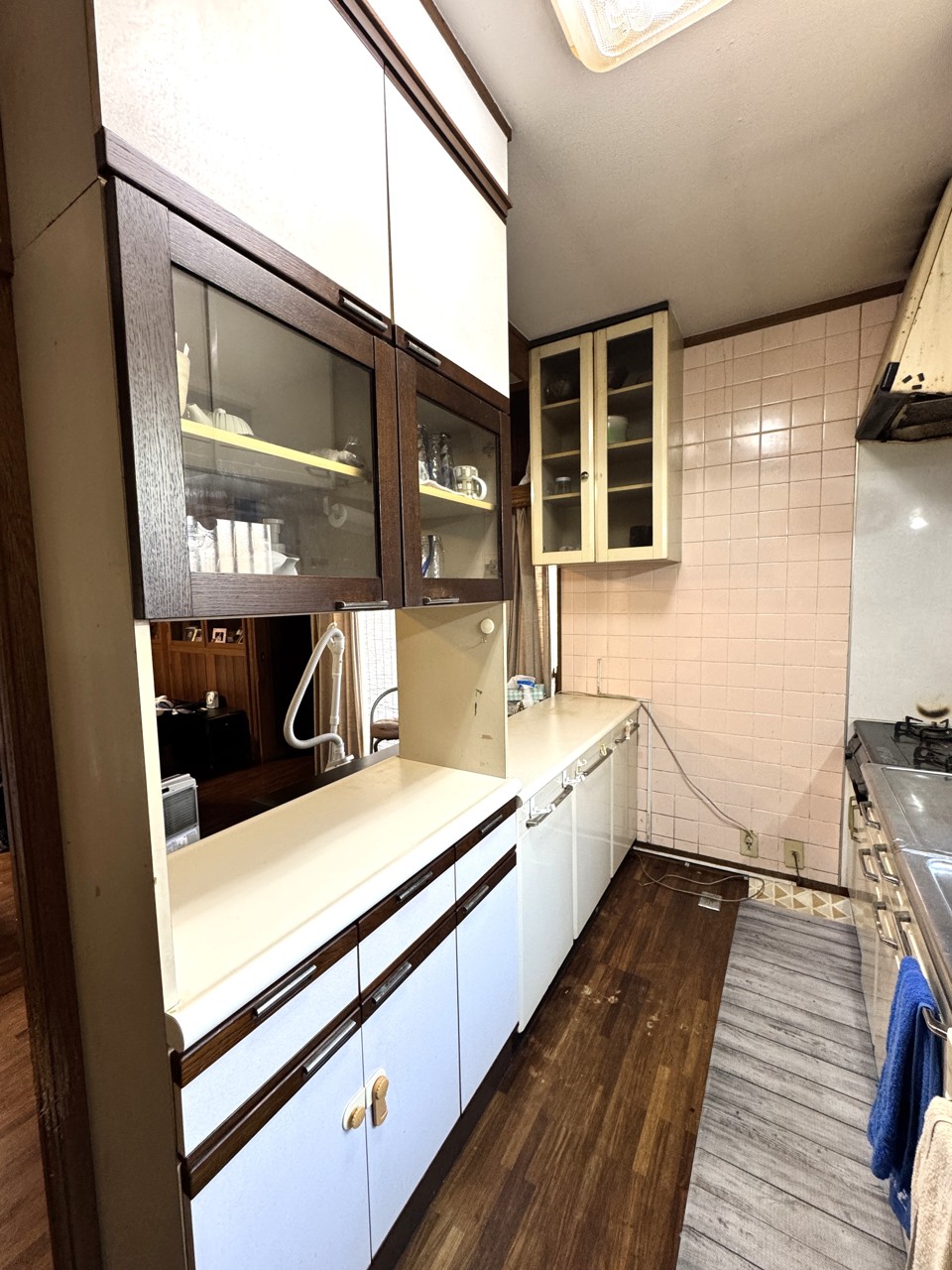 L型タイプのキッチンです。昭和レトロを感じるキッチンです。