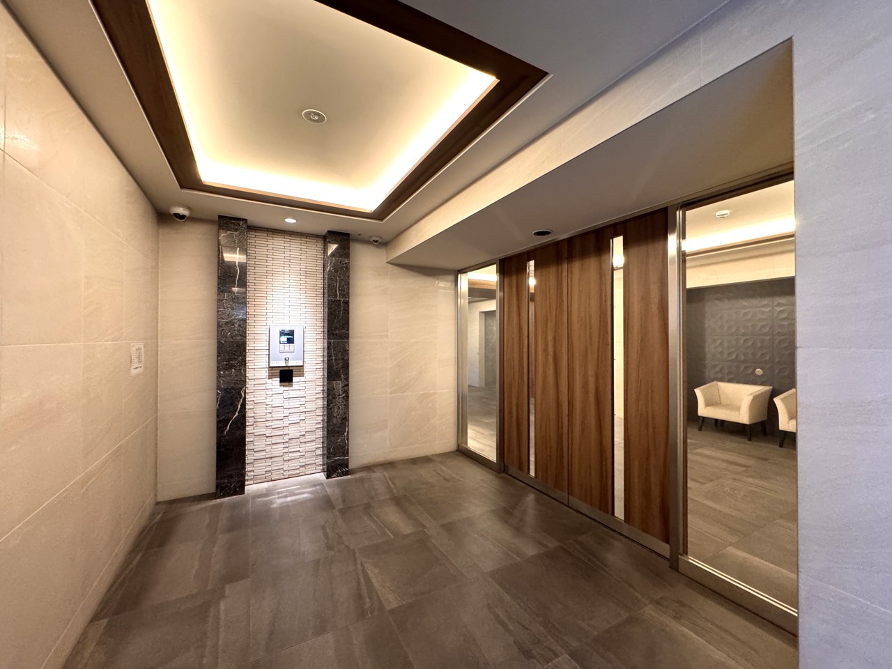 オートロック内側のロビーです。広めの空間が高級感を感じさせます。