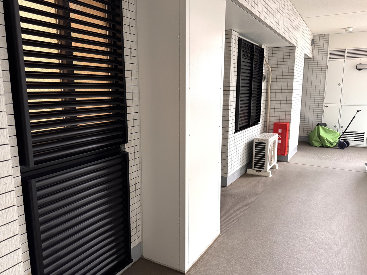廊下側の窓下にエアコン室外機を置けます。