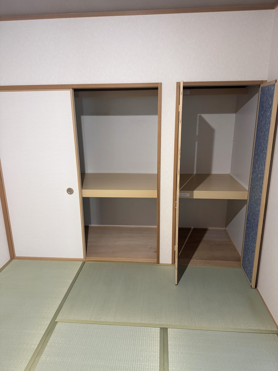 来客用の布団が収納可能な押し入れと、半畳の収納スペースがあります。